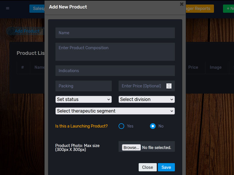 Products can be added easily with composition, indications, pricing, packing, image and can be categorised according to various segments.