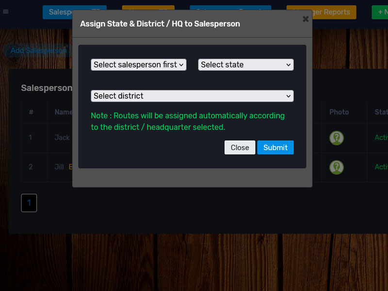By adding new salesperson to the system we can allocate routes to that person which can be edited or deleted later.